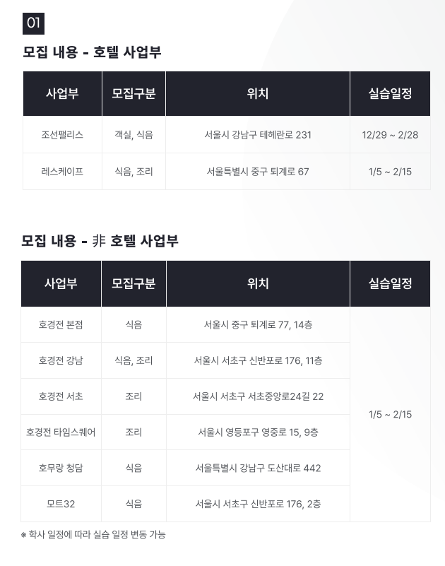 - 실습일정: 12/29 ~ 2/28 * 사업부별 일정 상이