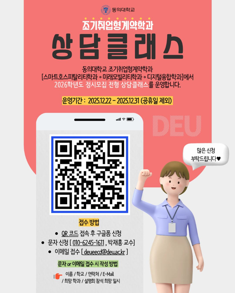 [동의대학교] 조기취업형계약학과사업단 2026학년도 신입생 모집에 따른 정시모집 상담클래스 신청 및 접수 안내